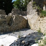 L’oste, un uomo enorme ma gentilissimo, ci ha dato le indicazioni giuste per raggiungere le rovine. Il sentiero è di facile percorrenza e la salita non è troppo faticosa. In meno di 10 minuti si avvistano già le rovine del castello. Purtroppo il sito è oggetto di scavi e ricerche archeologiche e la maggior parte dell’area è coperta da teli. Questo però non ci ha impedito di fare alcune belle foto degli equipaggiamenti.