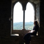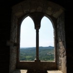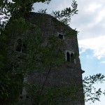 Ad un tratto, il silenzio del castello viene rotto da un vociare. Due uomini scendono dal piano più alto dell’ edificio: si tratta di addetti ai lavori che ci guardano con un’ espressione stupita dipinta sul volto… forse anche dovuta al fatto che Alessandra è vestita con abiti medievali femminili. E’ lei che spiega la situazione: vogliamo solo fare un paio di foto al castello per il nostro sito. I due uomini si guardano perplessi e poi ci domandano: “Ma da che parte siete saliti al castello?” E noi: “Dalla strada del bosco” al che loro scoppiano a ridere e ci rispondono: “Ma non potevate salire dalla nuova strada asfaltata che abbiamo costruito? Così se dovevate portare su più roba facevate meno fatica.” In effetti non sarebbe male l’idea di far foto in armatura utilizzando il castello di Partistagno come location ma ora, con i lavori di ristrutturazione in corso, sarà un progetto rimandato a tempo indeterminato anche perchè non credo saremo così fortunati da incontrare ogni volta persone così gentili come i due signori che ci hanno sorpreso al castello.
