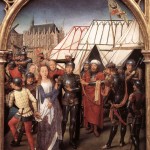 Raffigurata spesso nei dipinti, qui c’è un esempio tratto dal reliquiario di S. Ursula dipinto da Hans Memling nel 1489 circa. L’ armatura a stecche è una protezione che viene allacciata all’ imbottita e segue il movimento del braccio in modo alquanto naturale.