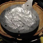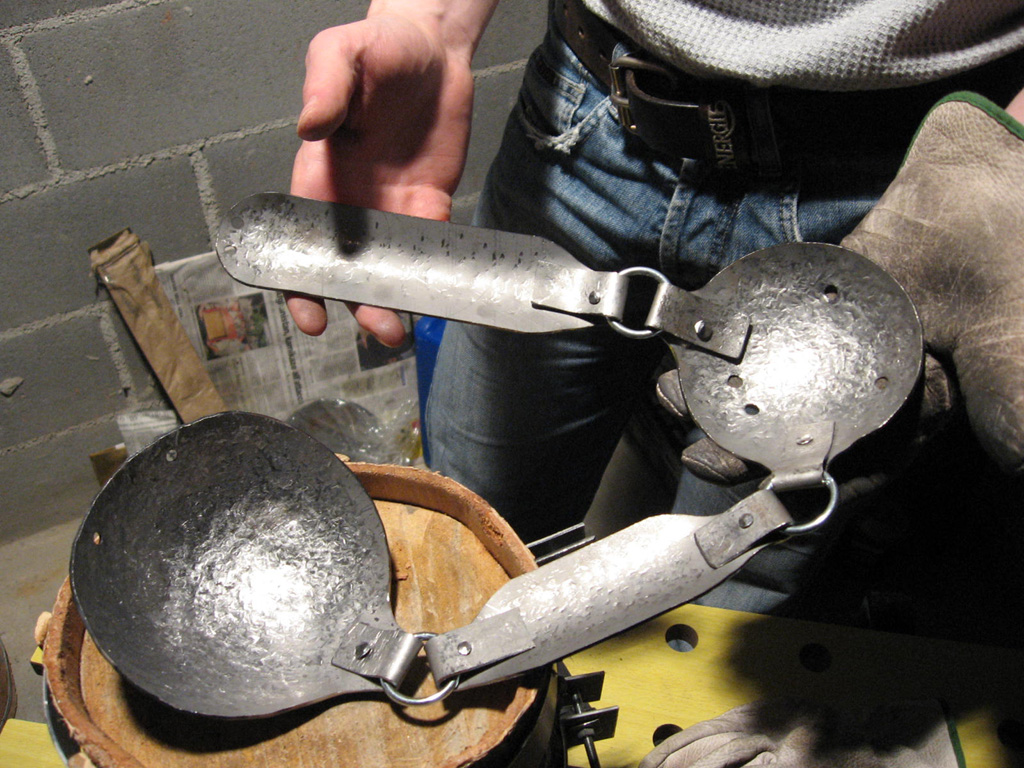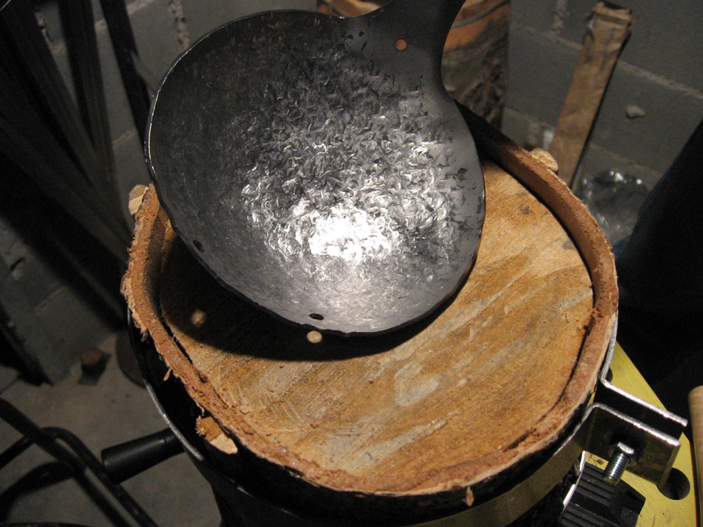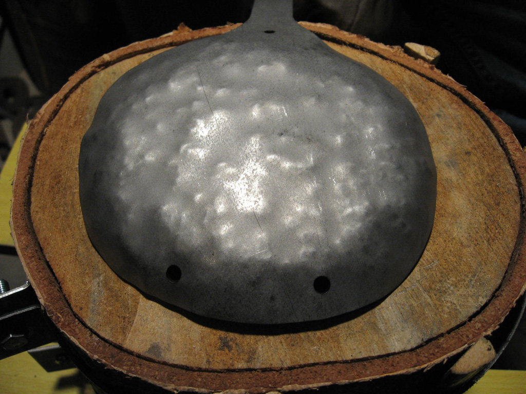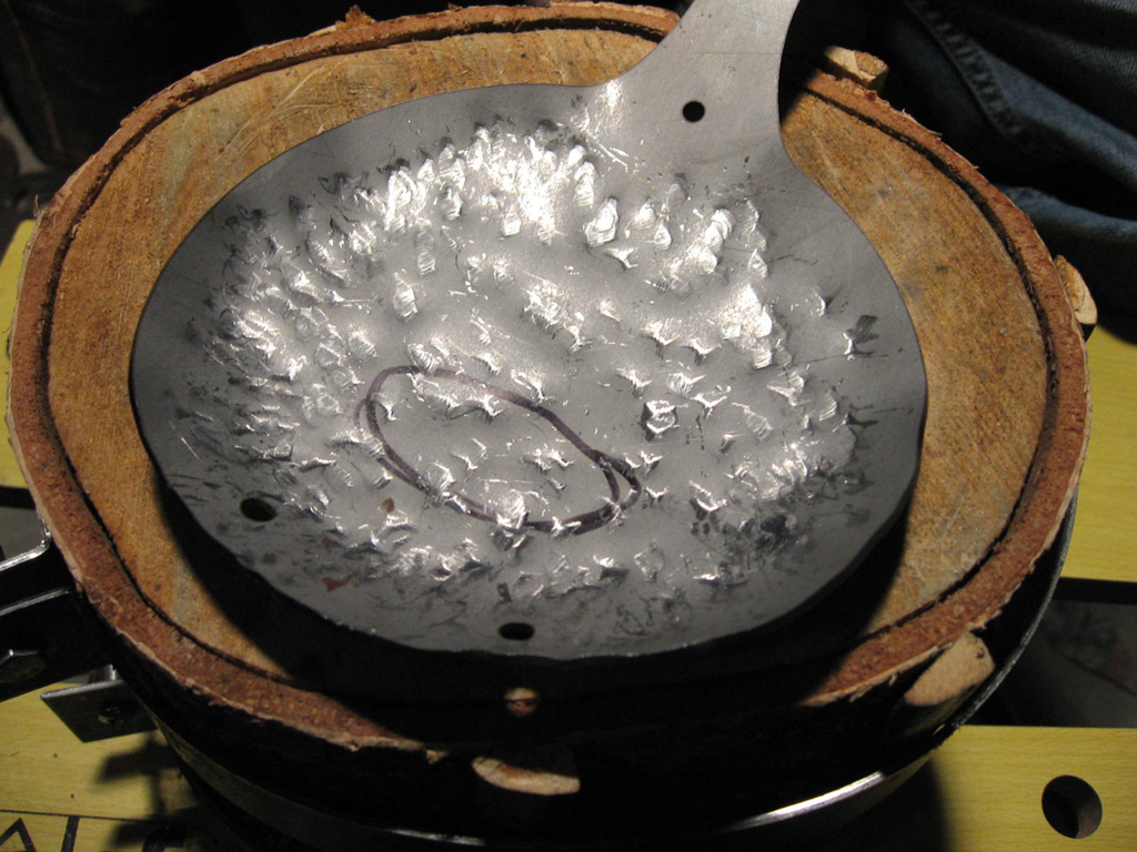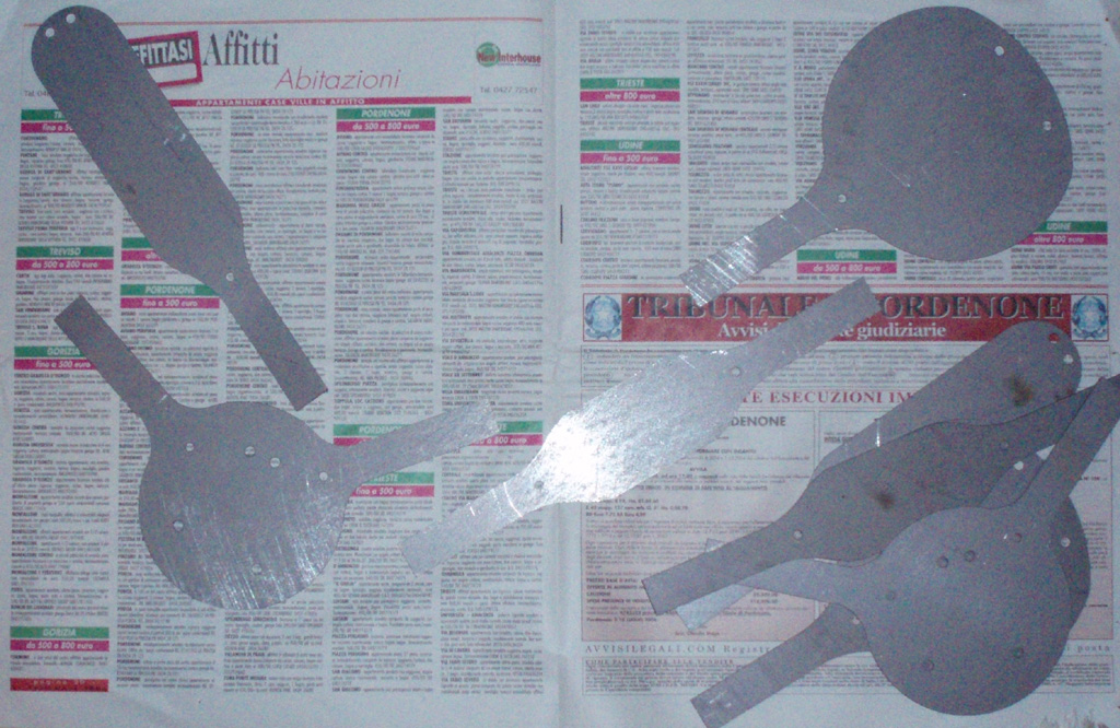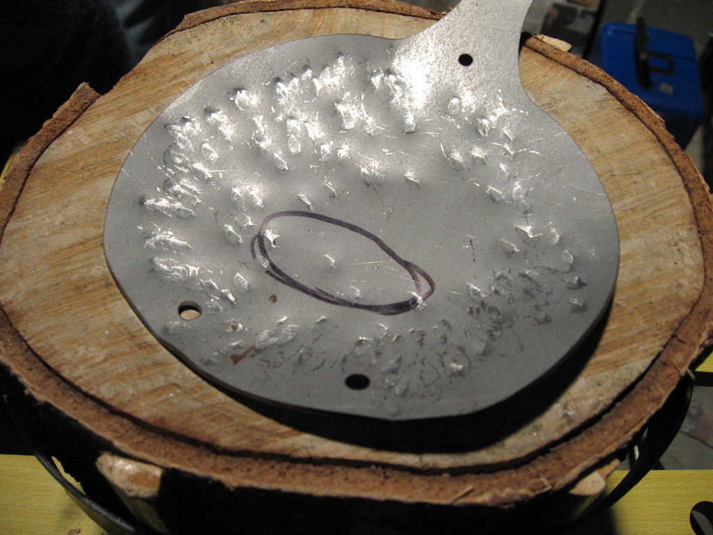 Complessivamente sono soddisfatto del risultato anche se il prototipo ha sofferto molto del martello non molto buono che ho adoperato. Il martello a testa semitonda che ho usato infatti ha una superfice di impatto imperfetta che ha ovviamente trasferito sul metallo tutte le imperfezioni del caso, dando al pezzo un’ aspetto puntinato che, nonostante gli sforzi per appianare, non è sparito del tutto.