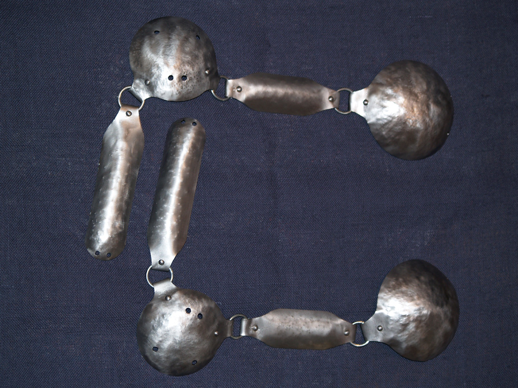 Il presente manufatto è un vero e proprio prototipo. Si trattava di realizzare una protezione per le braccia efficace ed economica per un fante leggero. Così la scelta è ricaduta su una tipica armatura a stecche del Tre-Quattrocento.