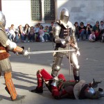 In occasione della 21.a mostra ornitologica “Senza Confini” siamo stati invitati a fare da completamento al gruppo di falconieri “Aquila”. Provenienti dalla Slovacchia hanno dato la possibiltà di osservare da vicino diversi tipi di rapaci, sia a terra, sia in volo. La SeptemCustodie ha invece mostrato ad un folto pubblico i propri studi sulla scherma, sulla ricostruzione di ben quattro arnesi completi databili alla fine del trecento e mostrato anche un’altro animale utilizzato nella caccia in epoca medievale ovvero il furetto. Ringraziamo gli organizzatori e gli amici slovacchi di Bojnice nonchè i loro splendidi rapaci.