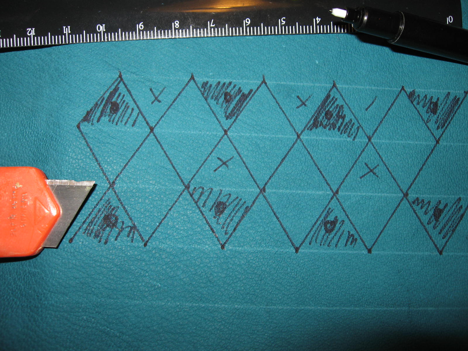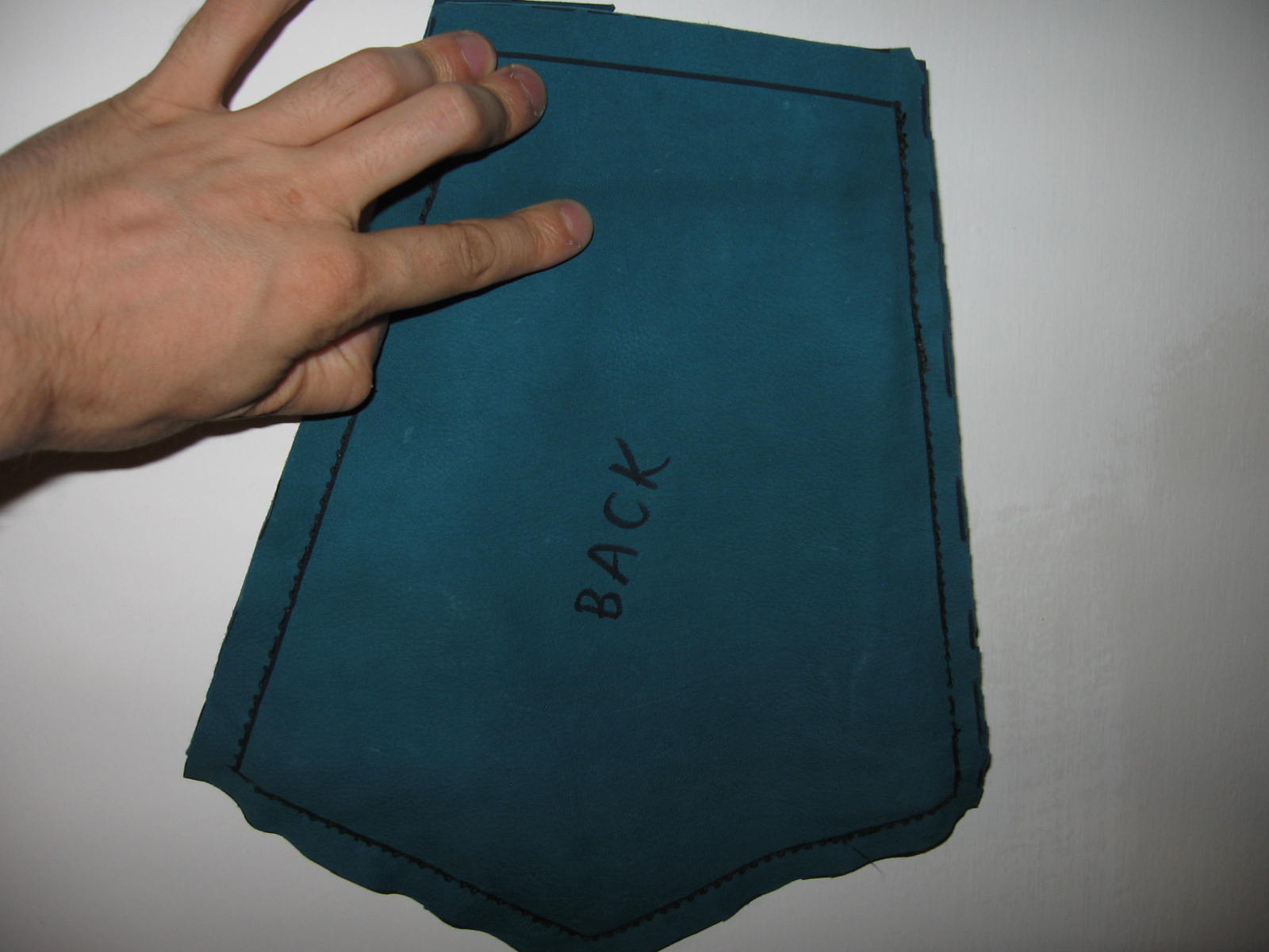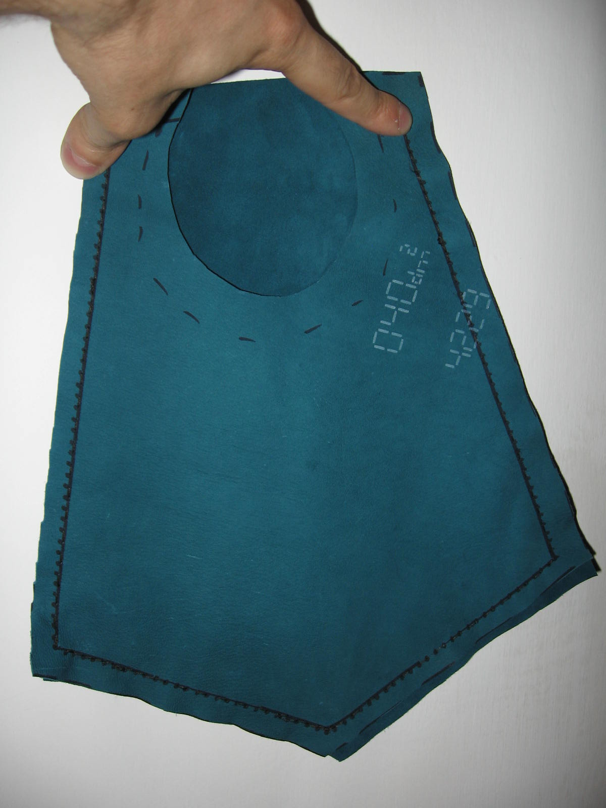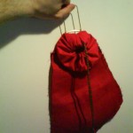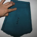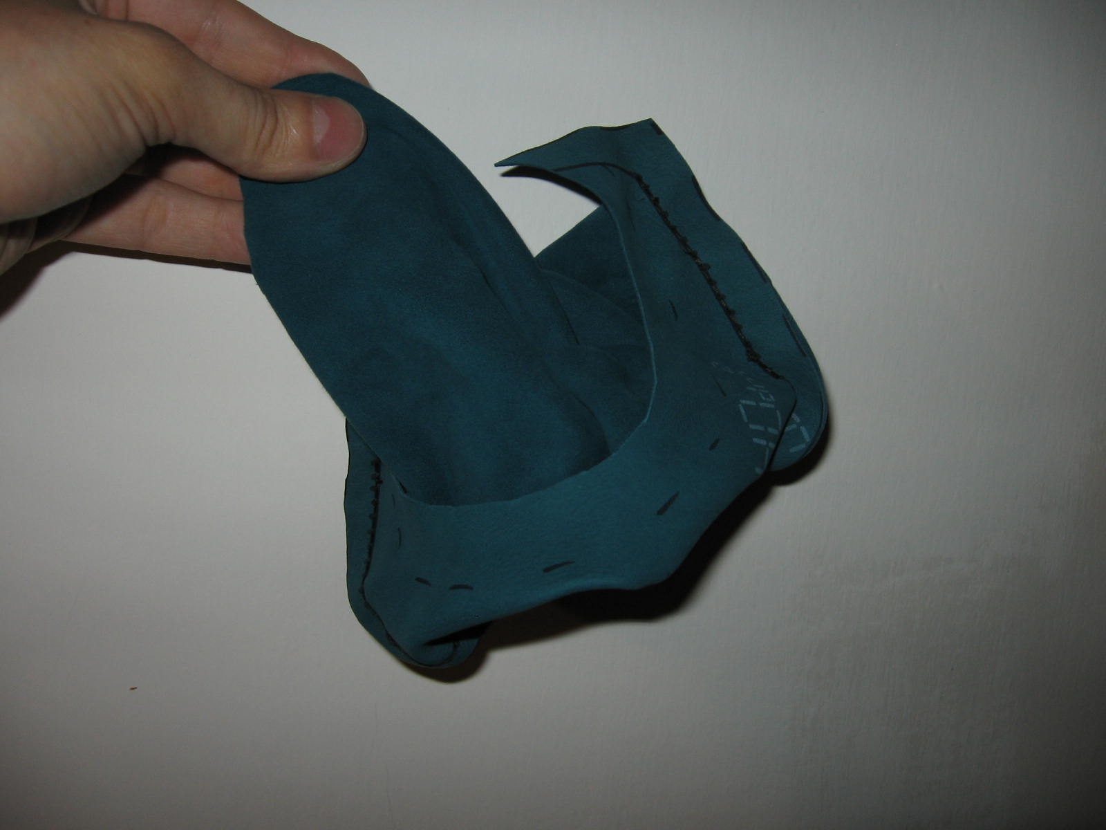 Nota di costruzione: l’interno è in lino rosso, l’inboccatura a strozzo in stoffa rossa, e l’esterno è in cuoio scamosciato colorato di un verde smeraldo. C’è chi dice che queste borse non erano in mai fatte in pelle, ma anzi erano fatte esclusivamente di stoffa il più delle volte ben ricamata, in effetti i reperti tendono a dare ragione a quest’ipotesi e non è detto che in un futuro non mi punga il vezzo di farne una completamente in stoffa, ma ci terrei a sottolineare che la lavorazione del pezzo è basato sul ragionevole dubbio che in fondo se le borse e i borselli venivano prodotti in pelle perché nessuno non ha mai prodotto una tasca con questo stesso materiale?! Io un paio di risposte ce le avrei ma preferirei prima sentire le critiche di qualcun’altro.