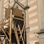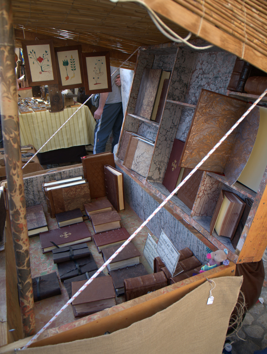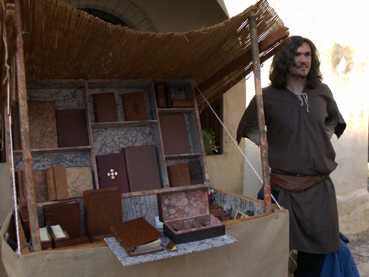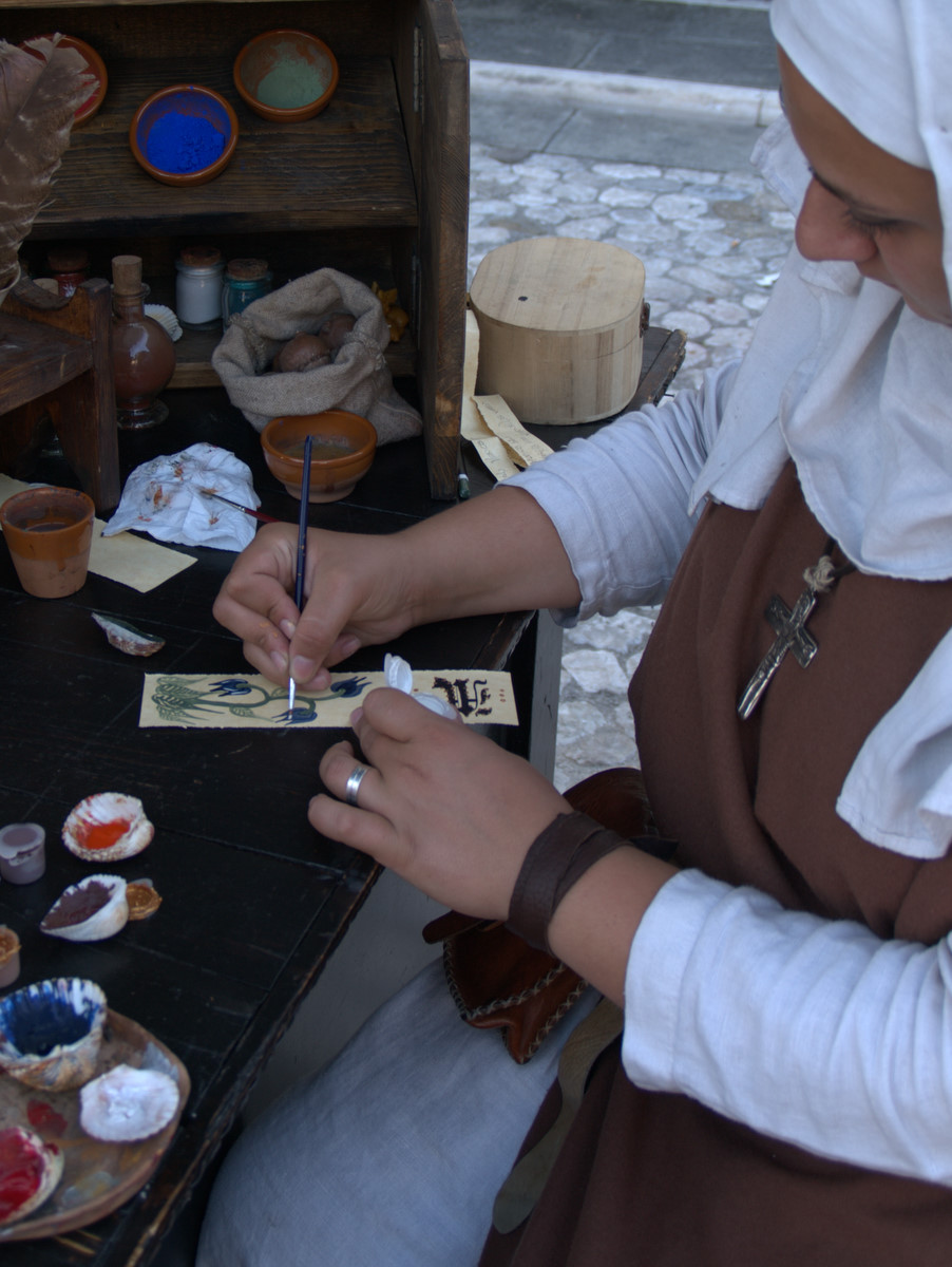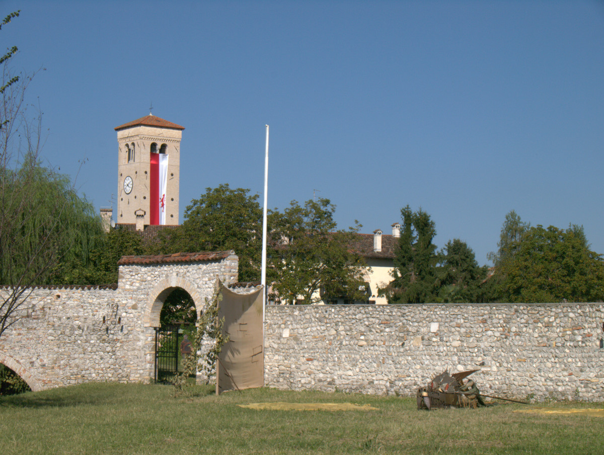 Il nostro piede ha calcato in passato le pietre del centro storico di Valvasone… E durante il weekend, i giorni prescelti per l’annuale rievocazione, l’ha fatto di nuovo: io, Martina, Giorgio ed Alessandra abbiamo infilato il farsetto e il kirtle e abbiamo ammirato le sue strade e le sue attrattive. Molti sono i dettagli che nelle rievocazioni ci fanno storcere il naso (siamo dei perfezionisti!), ma devo dire che l’organizzazione stavolta ci ha a più riprese stupito. Potrete ammirare tra le foto la fantastica impalcatura medievale eretta per il restauro del mosaico posato nel frontone della chiesa; un abbeveratoio di legno con le botti, al quale il furetto Demostene si è rinfrescato; la stupenda bancarella delle lane colorate con metodi antichi ed essenze vegetali (io e Marti facciamo i clienti trecenteschi… Peccato non fossero in vendita ma meramente dimostrative!).