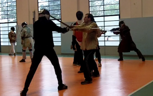 Sabato il Magistro Alessandro Pravisano della Compagnia de’ Malipiero ha illustrato una selezione in progressione di tecniche di bastone a due mani riprese dal Meyer, occupando il pomeriggio di noi tutti oltre che ogni singolo centimetro quadrato della palestra… il bastone di Meyer richiede veramente molto spazio per essere praticato! La lezione è stata estremamente intensa a tal punto da impedirci di raccogliere materiale per mostrarvi qualche immagine della giornata, ci scusiamo per la piccola mancanza.