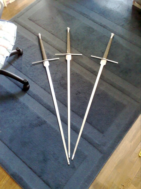 Durante le prime prove pratiche in palestra si sono rivelate gloriosamente agili e robuste, anche se usate contro repliche non certo esili quali quelle di Pavel Marek, che a fronte di dimensioni più contenute hanno un peso uguale se non addirittura superiore. Sia esercitarsi in coppia che allenarsi al Quadrato è una gioia. E’ una bellissima arma, e ne siamo tutti piuttosto contenti. Il buon Ensifer ha fatto un ottimo lavoro!