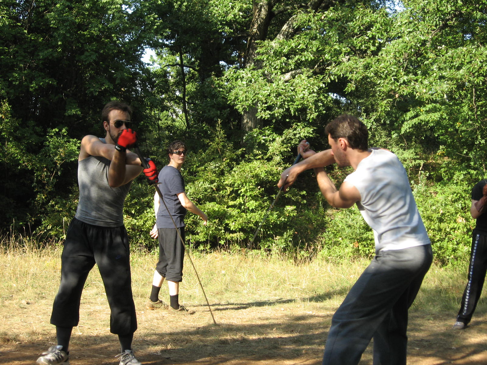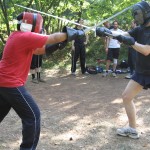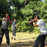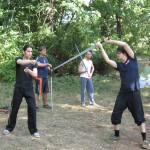 10/09/2011Grazie al cielo siamo stati graziati dal tempo, non che fare uno stage di 4 ore sotto la pioggia sia un completo disastro, ma la fanghiglia sotto le proprie scarpe è sempre un fastidio. E’ stata una proficua giornata dove si è ritrovata molta gente già intervenuta allo stage di spada e brocchiere. Una delle prime cose applicate da subito è stato il quadrato meyeresco che ha fatto sudare soprattutto i più esperti, è eccezionale il come ad ogni nuova ripetizione il movimento diventi sempre più profondo e impegnativo.
