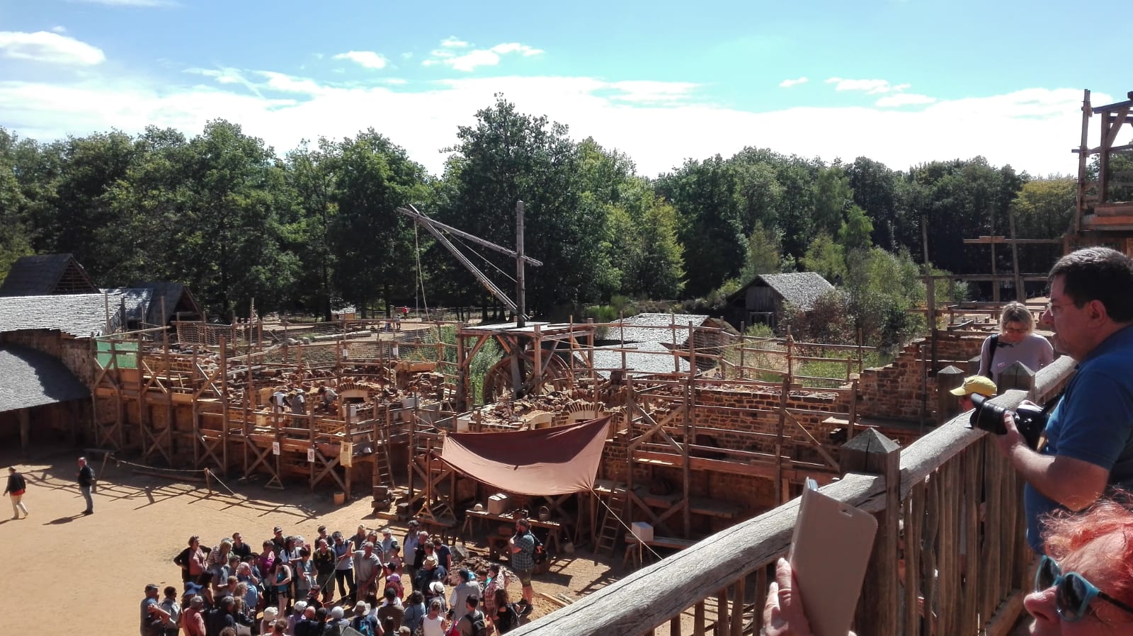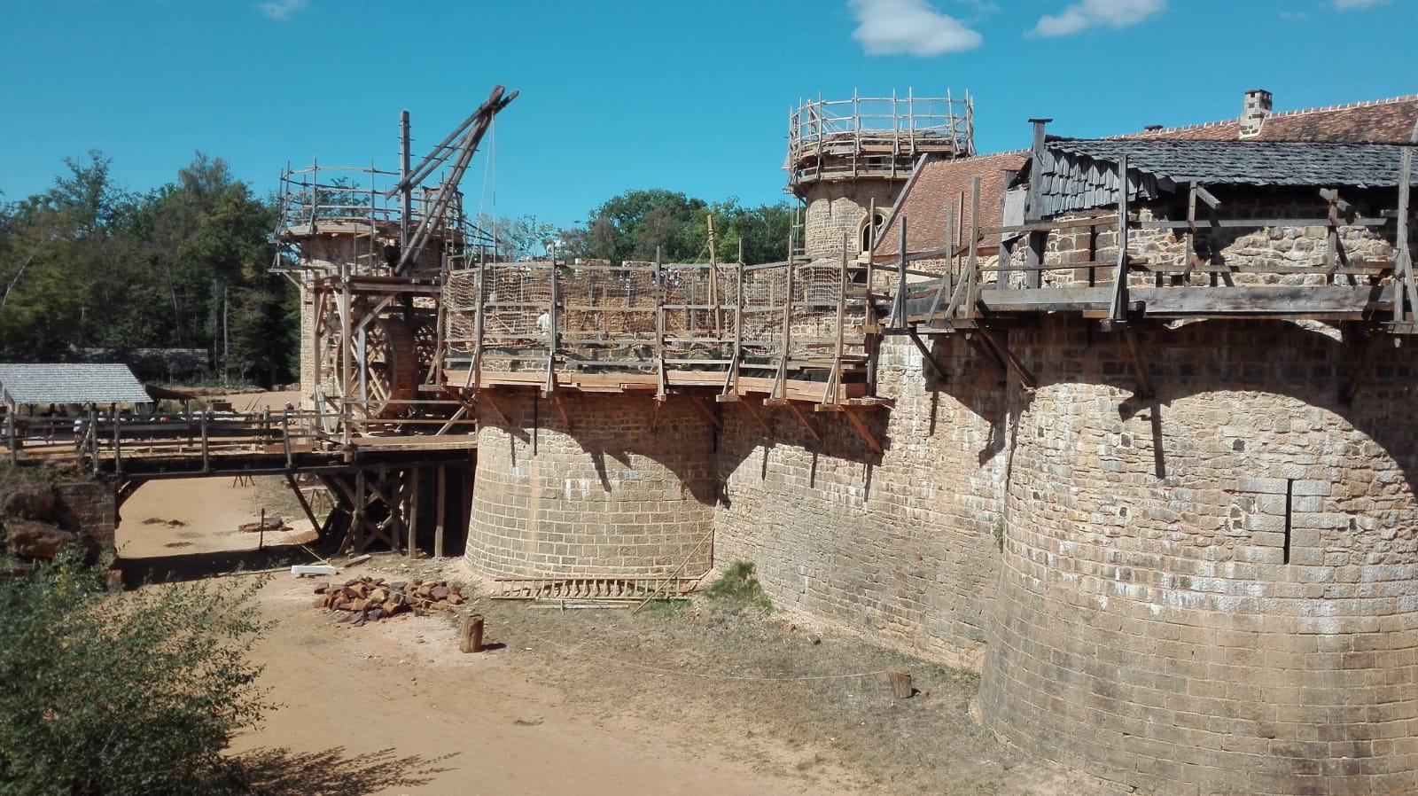 Oltre al castello, infatti, il sito ospita la ricostruzione di tutte le strutture annesse necessarie al funzionamento del cantiere. Si è resa necessaria la coltivazione di una cava in isto, la costruzione di forni per calce, la predisposizione di alloggi e ricoveri oltre a, naturalmente, la realizzazione di officine e botteghe per tutte le arti e mestieri coinvolti nella realizzazione del castello. Il risultato è un vero e proprio microcosmo medievale che ci permette di ammirare il lavoro di scalpellini e muratori ma anche falegnami, cordai, mugnai, tessitori, tintori, fabbri, coniatori e cuochi, tra gli altri.